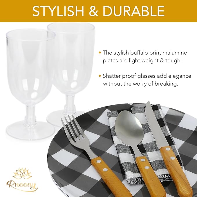- Picnic basket with blanket is perfect for enjoying a picnic with 4 persons offers high-quality accessories with 4* Glasses, 4* Plates, 4* Forks/ knives/ Spoons, 4* Napkins Clothes, 2* Pepper Shakers, 1* Chopping Board, 1* Cheese knife, 1* Bottle-Opener, 1* Blanket