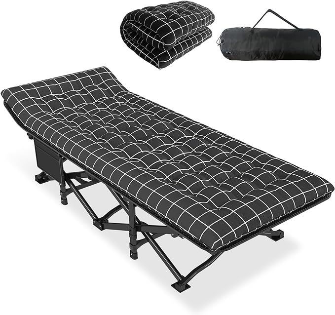 ATORPOK Camping Cot for Adults with Cushion Comfortable,Portable Folding Bed for Sleeping,Lightweight Folding Bed with Carry Bag for Kids Supports 450 lbs (Black)