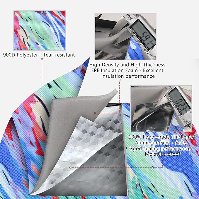 - HIGH QUALITY: The insulated lunch bag is lined with Food-grade thickened aluminum foil, padded with high density EPE foam, and outlayer is made of premium waterproof fabric, Dual SBS zipper is smooth and durable.Exquisite sewing technology makes this reusable snack bags more reliable and durable