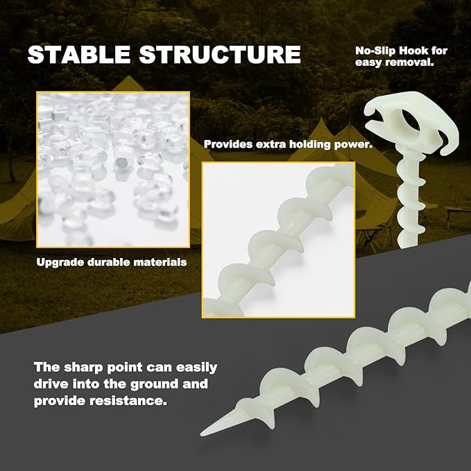 - Give You Peace of Mind: Our ground anchors feature a thickened spiral design that will provide strong support when screwed into the ground, ensuring your tent is safe in wind and rain.