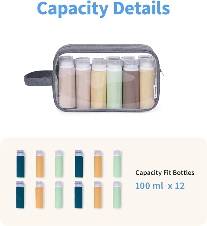 Narwey Clear Travel Toiletry Bags for Traveling Toiletries Men Women, Clear Makeup Bag Cosmetic Bag with Zipper, Make Up Pouch Organizer Bags with Handle, Skincare Bag (Grey)