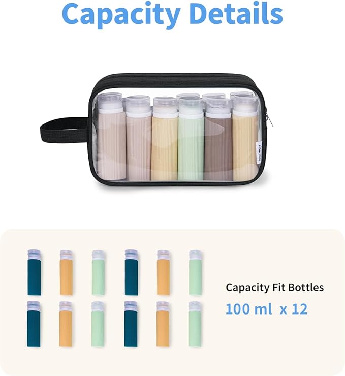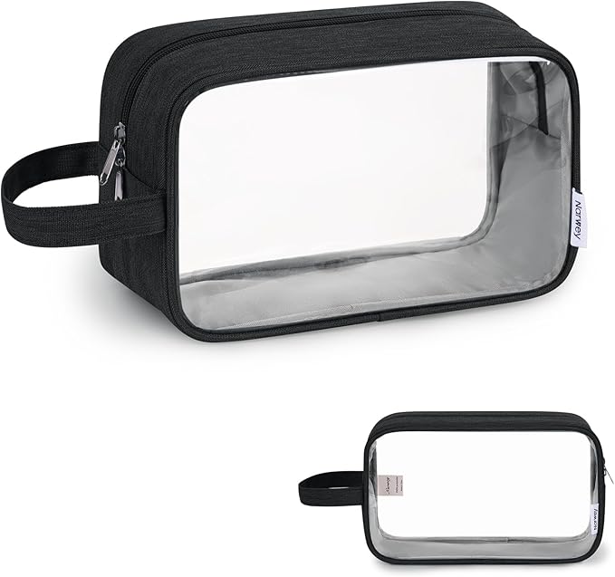 Narwey Clear Travel Toiletry Bags for Traveling Toiletries Men Women, Clear Makeup Bag Cosmetic Bag with Zipper, Make Up Pouch Organizer Bags with Handle, Skincare Bag (Black)
