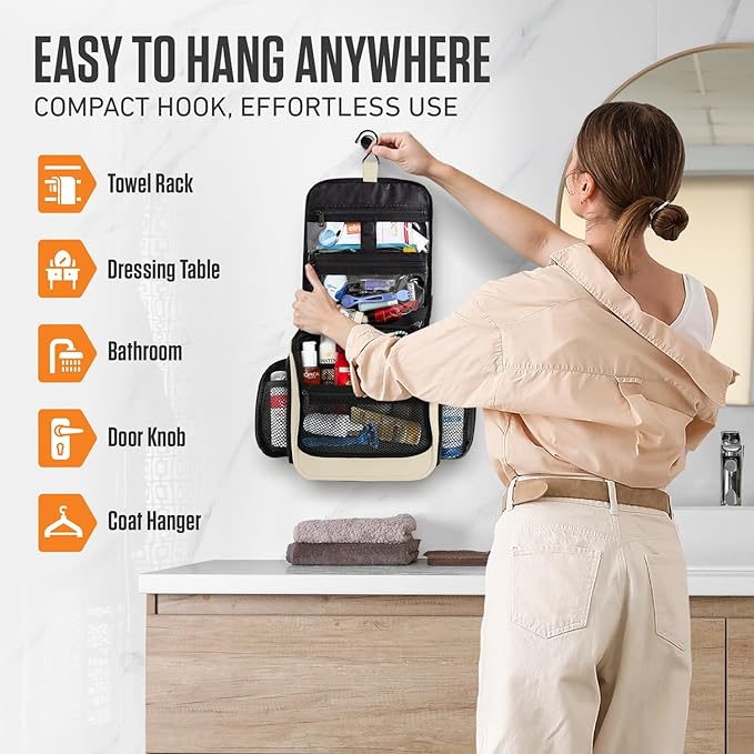 VENTURE 4TH Hanging Travel Toiletry Bag for Women & Men - Travel Organizer with Expandable Compartments & Removable Clear Pouch for Toiletries (Beige)