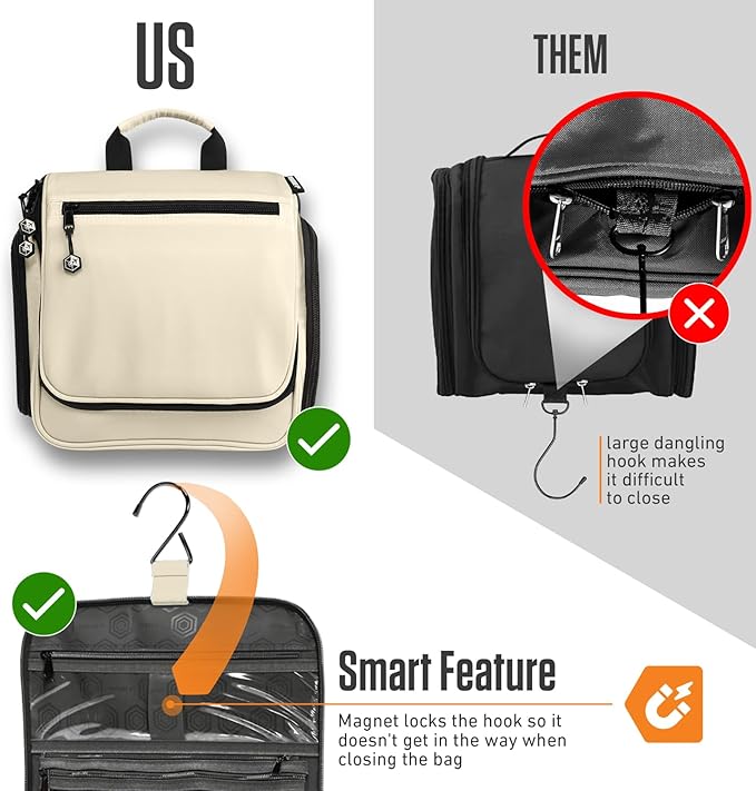- HOOK & ORGANIZATION – 18 compartments and a versatile hook let you hang it, save space, or stand it upright when needed. Perfect for travel, camping, or at home.