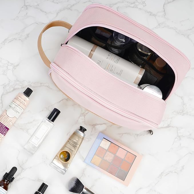 WANDF Travel Toiletry Bag for Men Large Toiletries Shaving Bag Water Resistant Hanging Dopp Kit Travel Accessories Bag for Women Men (Pink)