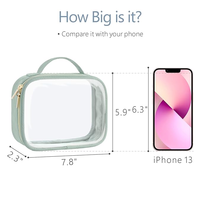 - TSA-approved & hassle-free security checks: This medium clear makeup bag measures 7.8 x 2.3 x 5.9 inches, perfectly complying with TSA’s 3-1-1 liquids rule and breeze through airport security without unpacking;