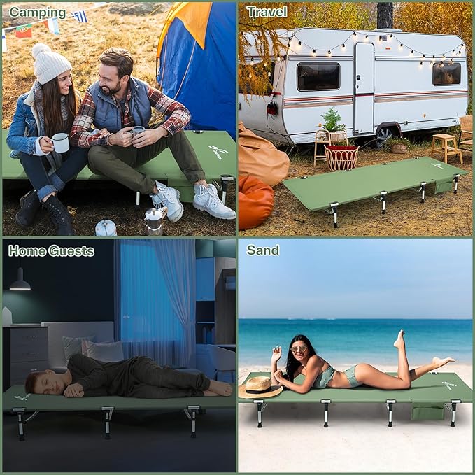 - Comfortable Sleeping: Elevate your camping experience our folding cot for adults. Its 8 non-slip feet promise excellent stability on any surface, while the 8-inch height keeps you away from damp ground, and annoying crawling animals. Adventure out camping cots and experience ultimate comfort, durability, and convenience.