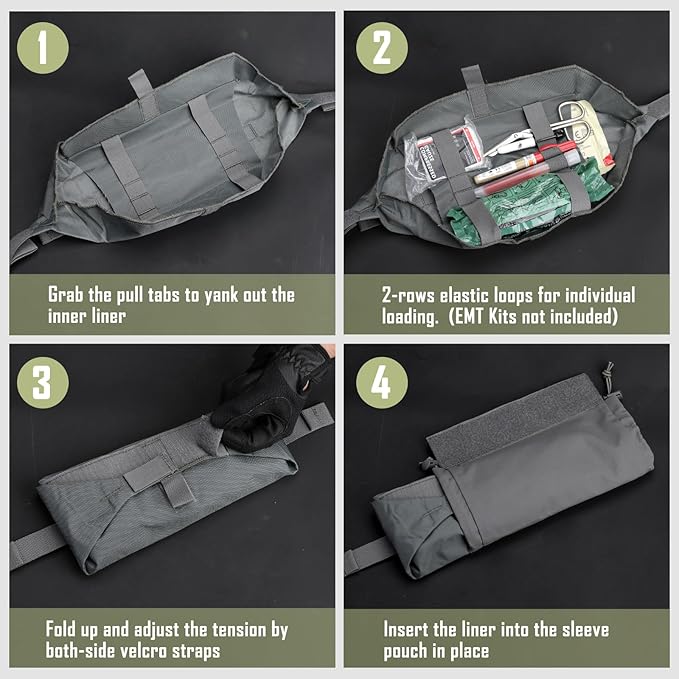 - EXPEDIENTLY ACCESS: First Aid Pouch with an open-ended, ambient extraneous design and adjustable shock cords on both sides to hold items safely. Medical Bag can grab the pull tab from left or right with one hand, outing the insert to access IFAK contents, go to work, and respond quickly and confidently in any situation.