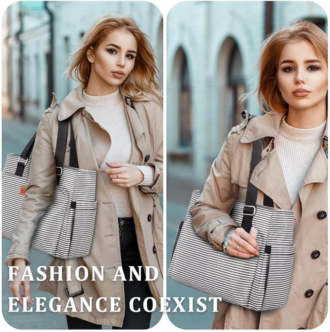 Large Women Lunch Bags for Work/Insulated Adult Lunch Box for Women/Leakproof Cooler Lunch Tote Bag with Storage Pocket. Reusable Lunch Cooler Purse for Work Picnic Hiking 14L, Stripe