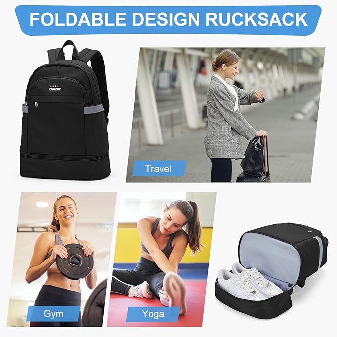 coofay Small Gym Backpack For Women Men Black Travel Backpack With Shoe Compartment Waterproof Sports Backpacks Small Gym Bag for Women Dance Backpacks For Dancers