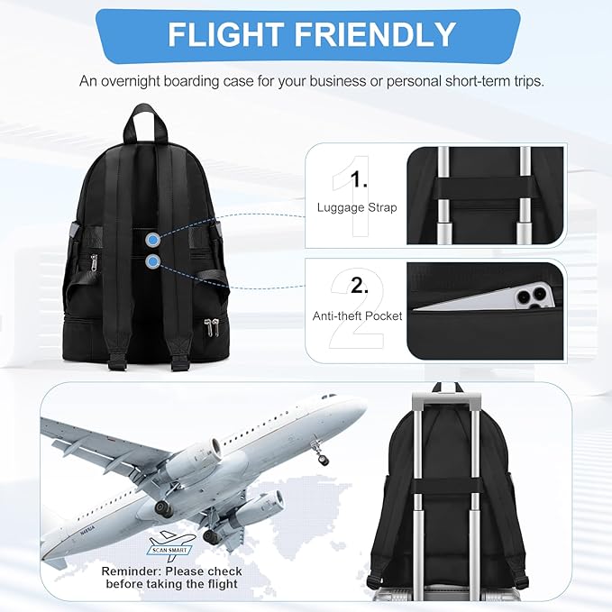 - 【SAFETY】This anti theft backpack has anti-theft pockets on the back to hold your cell phone, making it convenient for you to use your cell phone while keeping it safe from being stolen.This backpack with luggage strap easily fits over luggage trolleys and relaxes your hands and shoulders when you go traveling.
