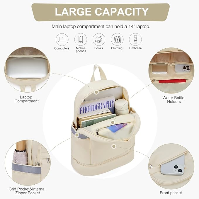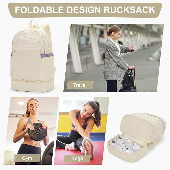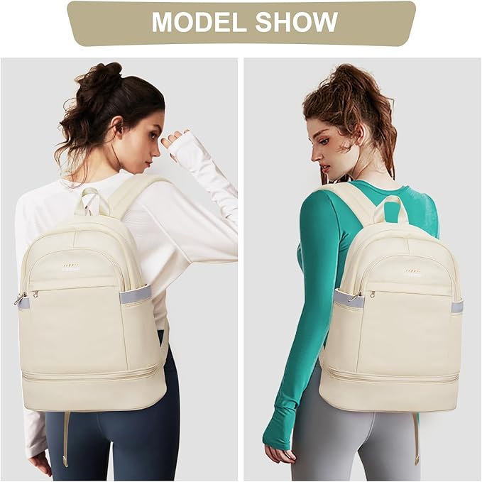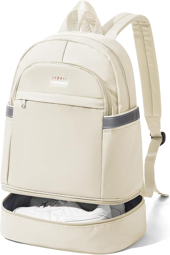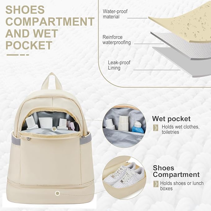 coofay Small Gym Backpack For Women Men Dance Sports Backpack With Shoe Compartment Waterproof Travel Backpack Small Gym Bag Beige