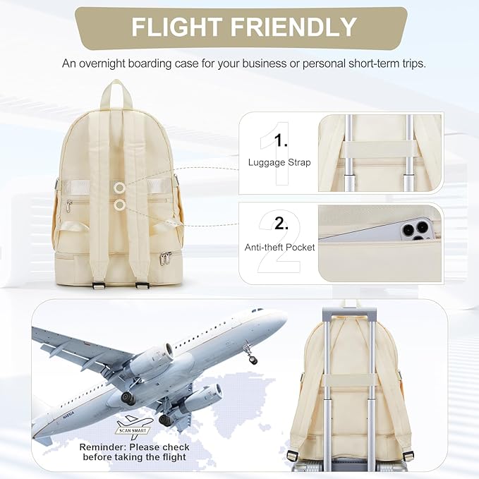 - 【SAFETY】This anti-theft bag has anti-theft pockets on the back to hold your cell phone, making it convenient for you to use your cell phone while keeping it safe from being stolen.This luggage backpack with luggage strap easily fits over luggage trolleys and relaxes your hands and shoulders when you go traveling.