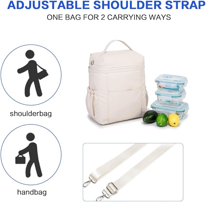 - Portable and cute design: this lunch bag is made of waterproof nylon outside, it’s lightweight and tear resistant; With two ways of carrying- top handle and cross-body by a detachable and adjustable long shoulder strap.