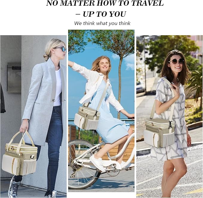 Lunch Box & Lunch Bag for Women Men, Large Insulated Adult Lunch Box Leakproof Lunchbox Cooler Bag for Work Picnic Beach,16L, Beige & White