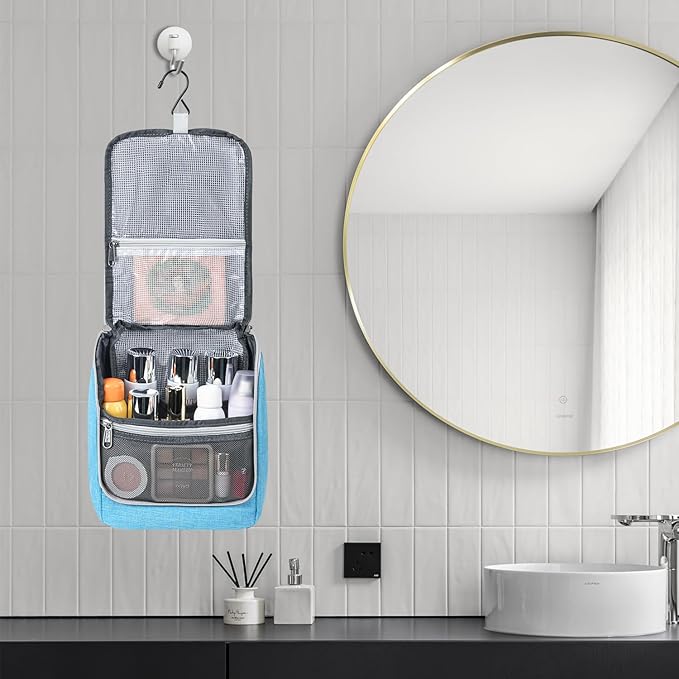 Della Gao Hanging Toiletry Bag for Men & Women, Portable Travel Cosmetic Makeup Bag Toiletries Organizer Kit, Water Resistant Bathroom Bag, Blue