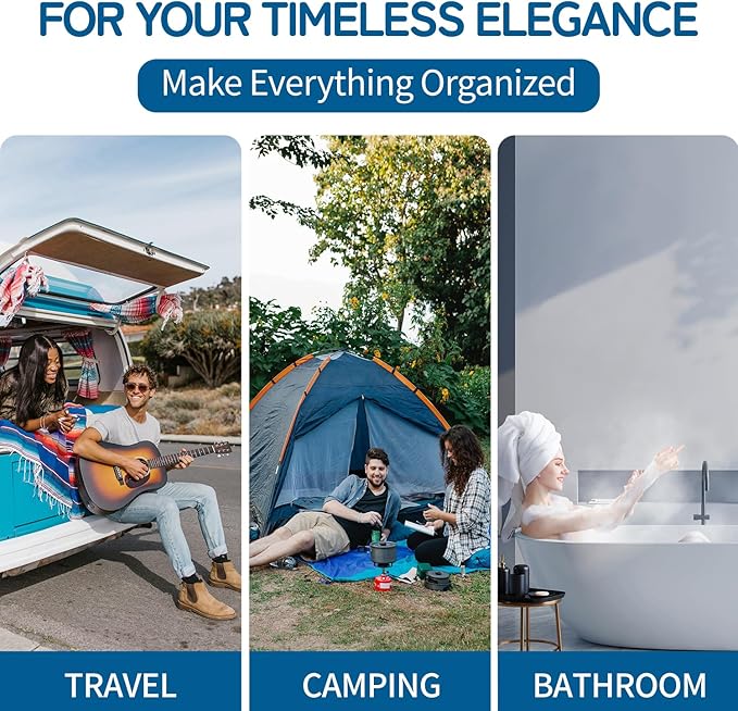 - Hassle-free Travel: Are you worried about packing for your trip? Rummaging around for your toiletries like shavers or shampoo? Staying organised is a breeze with this hanging toiletry bag, forget the stress of packing and say hello to carefree travel. With this toiletry bag you'll always have the perfect place to keep all your toiletries and cosmetics, and the 360⁰ metal swivel hook allows you to hang it anywhere for easy access