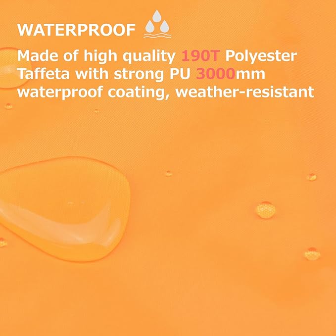 • 🏕 WATERPROOF & UV PROTECTION: Made of 190T ripstop polyester taffeta fabric, the waterproof coefficient is up to 3000 mm, which protects you and your belongings from moisture and provides lasting protection. The sunshade can effectively block ultraviolet rays and protect skin from sunlight damage