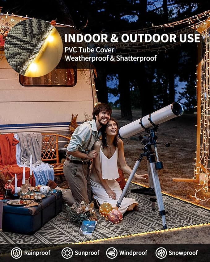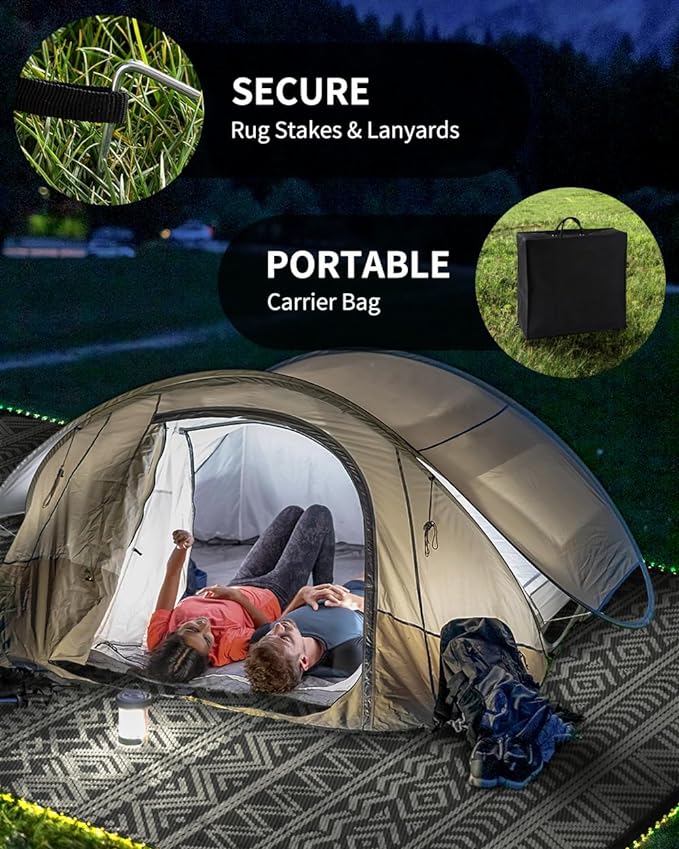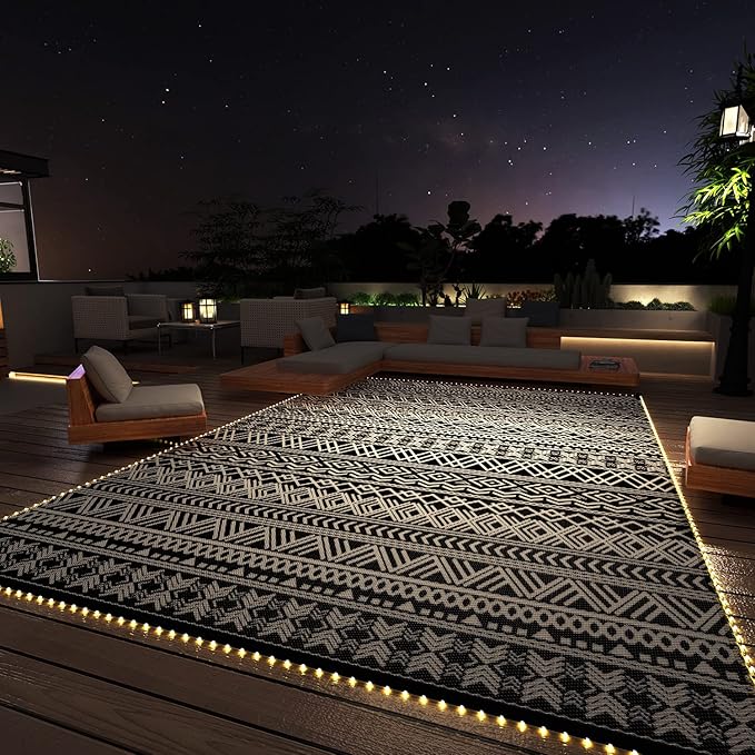 - Reversible&Versatile: A budget-friendly two-tone reversible mat is a great outdoor decor for patio and outdoor camping. Modern, versatile and sleek geometric design offers color and personality to your indoor outdoor space. Extra strip lights spruce up the dankness with romance.