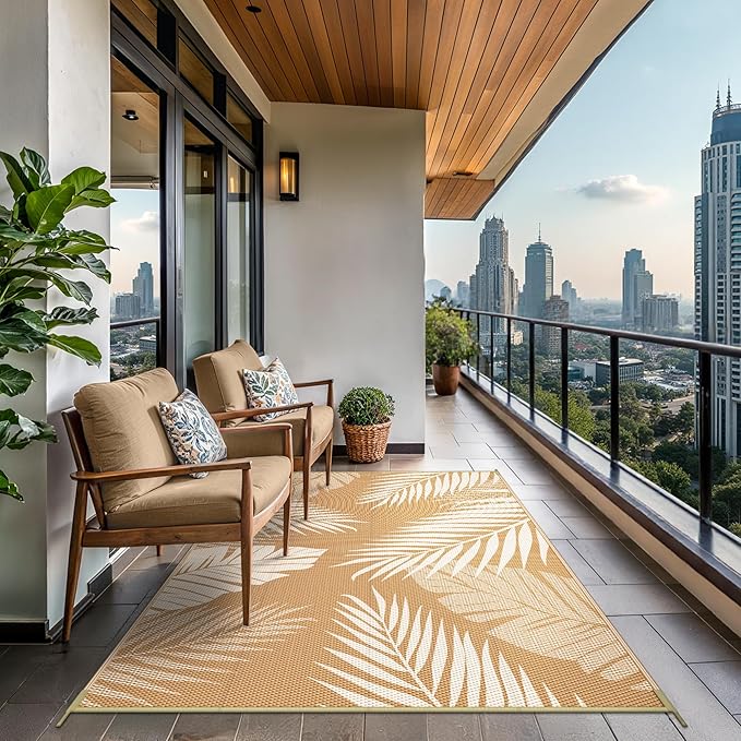 - Palm Leaf Design & Double-Sided Pattern: GENIMO reversible outdoor rug is designed with a double-sided pattern, completing the unique layout of multiple palm leaves. The 2 shades of brown and beige achieve the ultimate fusion. Either side can blend perfectly with nature and look very full and comfortable