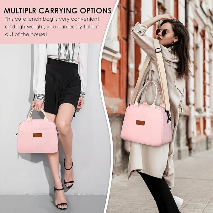 LOKASS Lunch Bag for Women-Insulated Adults Lunch Box with Front Pocket- Small Cute Lunch Tote for Work-Reusable Cooler Bag for Office Picnic Beach or Travel(pink)