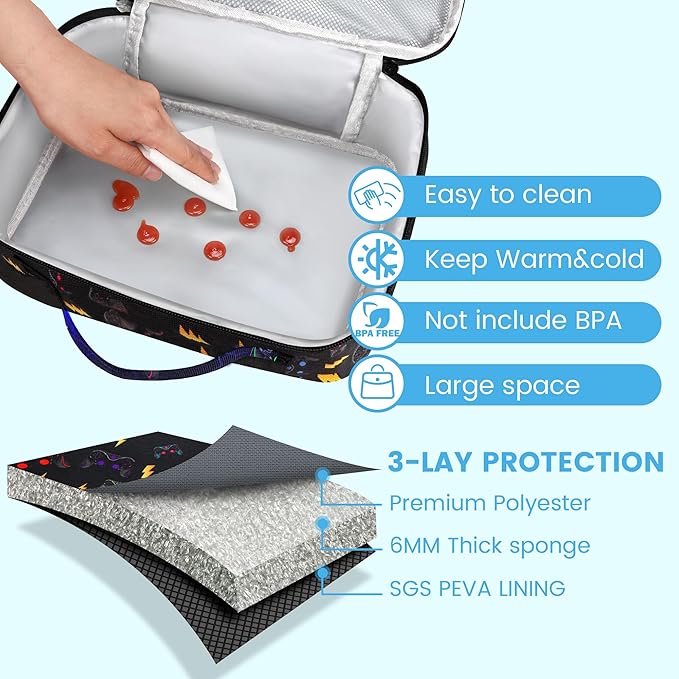 - This boys game insulated lunch bag is uniquely built to meet all your daily lunch, meal prep, or snacking need. With ice pack,insulation helps retain hot and cold temperatures whole day to improve food quality, freshness and taste,keep the meal healthy.