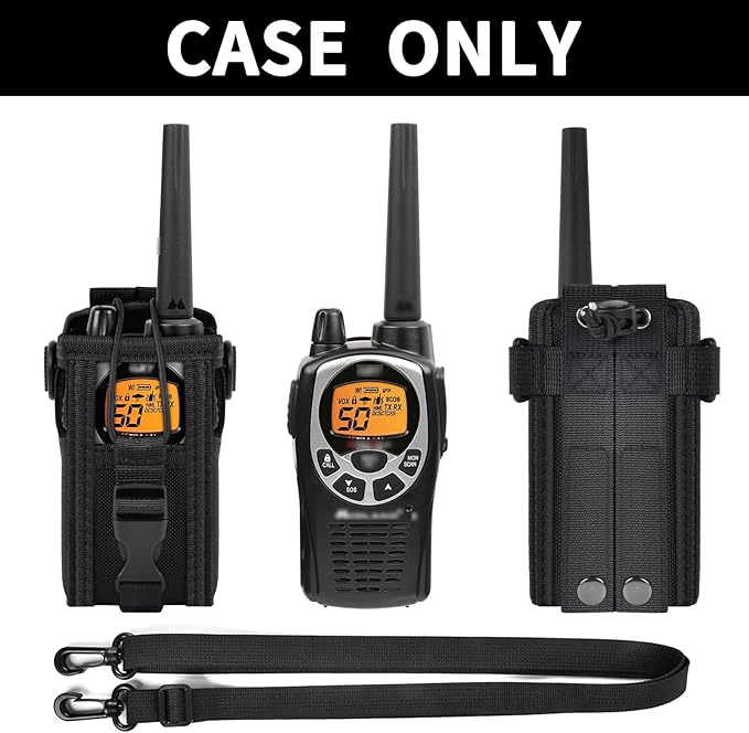 - Portable frs two-way radios case: Waki taki carrying bag comes with an adjustable shoulder strap so you can wear it crossbody, the back of the organizer has straps for gxt1050vp4 walkie-talkie to hang on your waist, and the Velcro and button design keeps it tightly on the belt without moving easily.