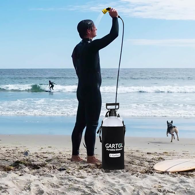 - [MULTI-PURPOSE VERSATILITY] Perfect as a camping shower, offering pressurized water wherever you go. Versatile applications include surfing, dog washing, car cleaning, boating, and fishing. Simplify cleanup whether you're in a remote campsite or at a beach parking lot after surfing.