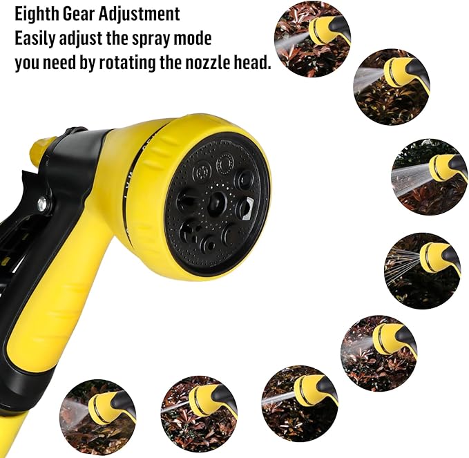 - [HUMANIZED DESIGN WATER GUN] 360-Degree Rotating Nozzle with 8 Sprinkling Modes: Experience versatile water spraying with a nozzle that effortlessly rotates 360 degrees. Eight sprinkling modes cater to different needs, providing a customized and enjoyable experience. The buckle on the water gun can be locked, non-slip, widened and labor-saving handle conforms to ergonomics.