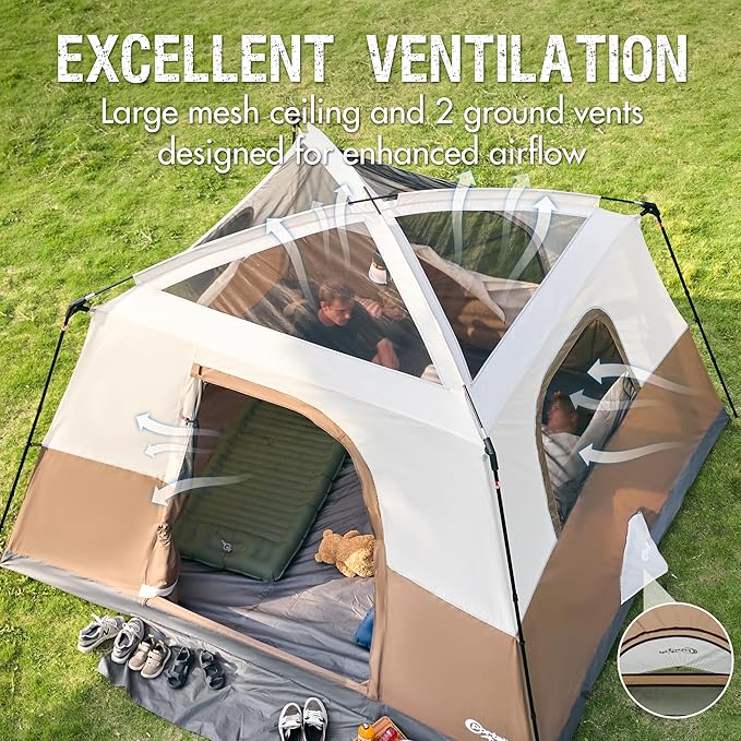- Good Ventilation & View: The tent has 3 Large Mesh Windows, 2 ground vents and 1 mesh ceiling which promote air circulation. You can enjoy a starry night view (without the rainfly) while having a good night's sleep.