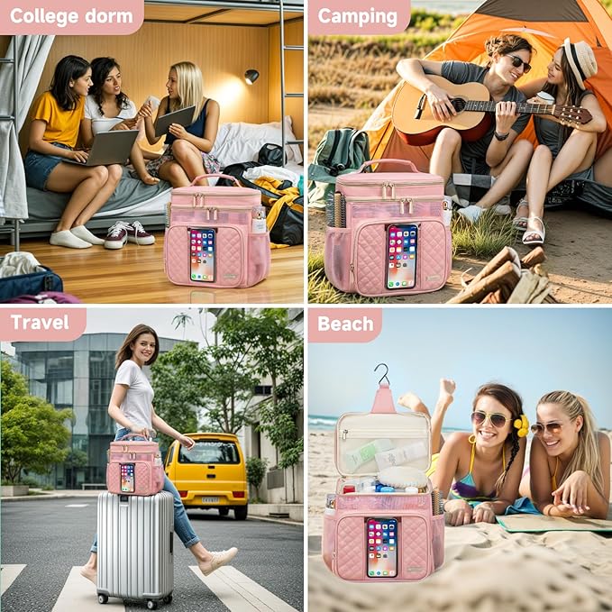 - 【Multi-Purpose Travel Essentials Toiletry Bag 】This shower caddy is suitable not only for daily family bathing and storage organizer, but also be a perfect life partner for college dorm room essentials, makeup, camping, travel, beach, swimming, cruise ship, gym, bathroom and business trip, In addition, this multi-functional travel makeup bag can be folded to save space when not in use, Easy to carry