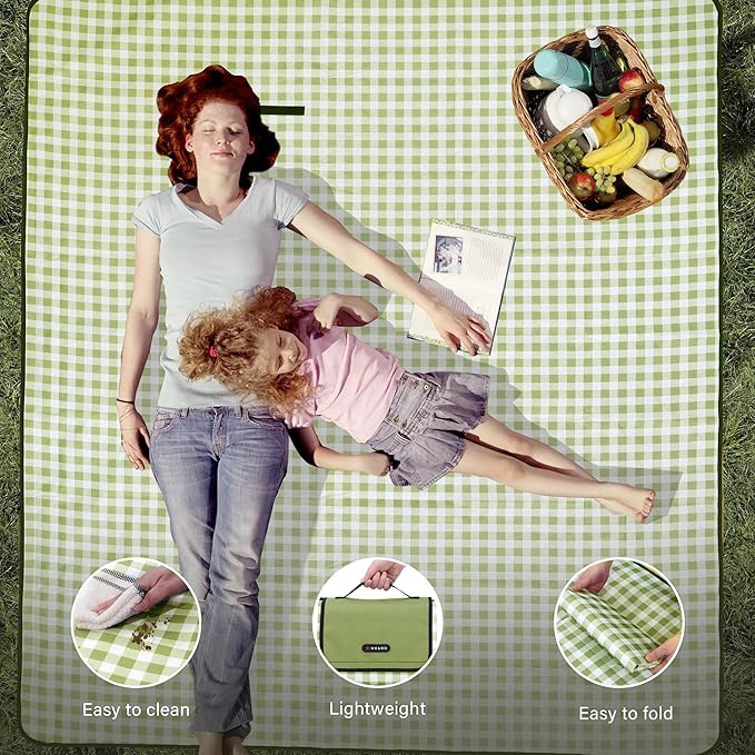 Outdoor Picnic Blanket 80"X80" Picnic Mat Extra Large Camping Blanket Beach Blanket Foldable Waterproof Sand Mat Hiking Travel Family Concerts(Green)
