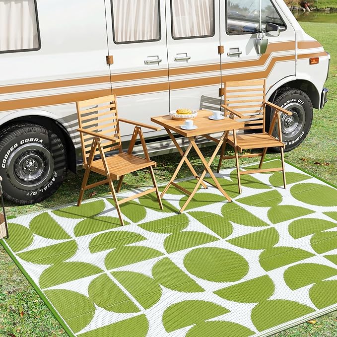 - 【Reversible Rug】-- Bring a touch of boho art charm to your outdoor space with our plastic outdoor rug. Its reversible design lets you switch up your decor easily and enjoy different color combinations that's perfect for your deck, patio, balcony, and more.