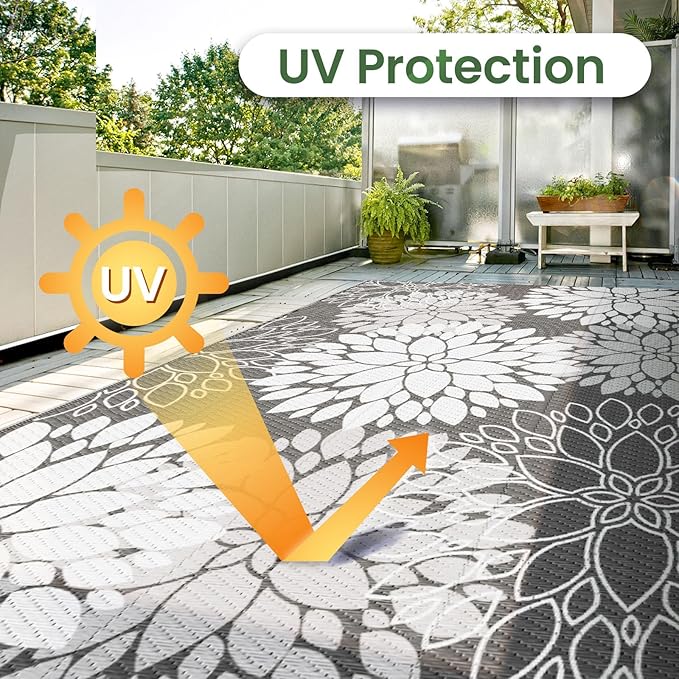 - VERSATILE: featuring a reversible design with beautiful flower patterns on both sides, our outdoor rugs are perfect for various outdoor spaces such as patios, porches, gardens, decks, picnics, and RV camping