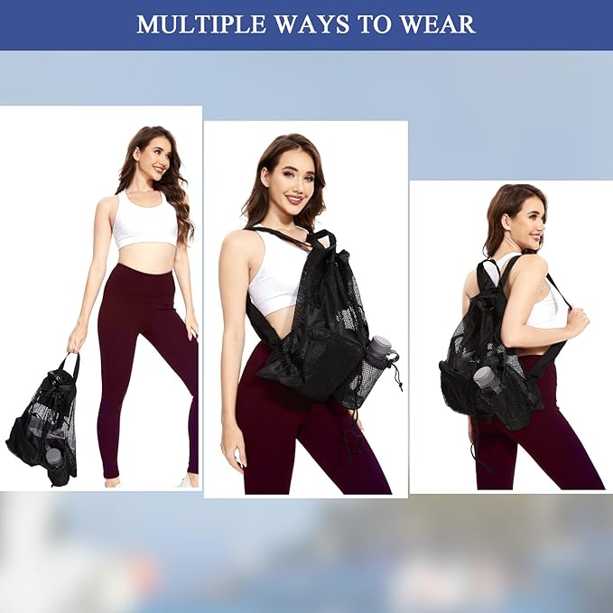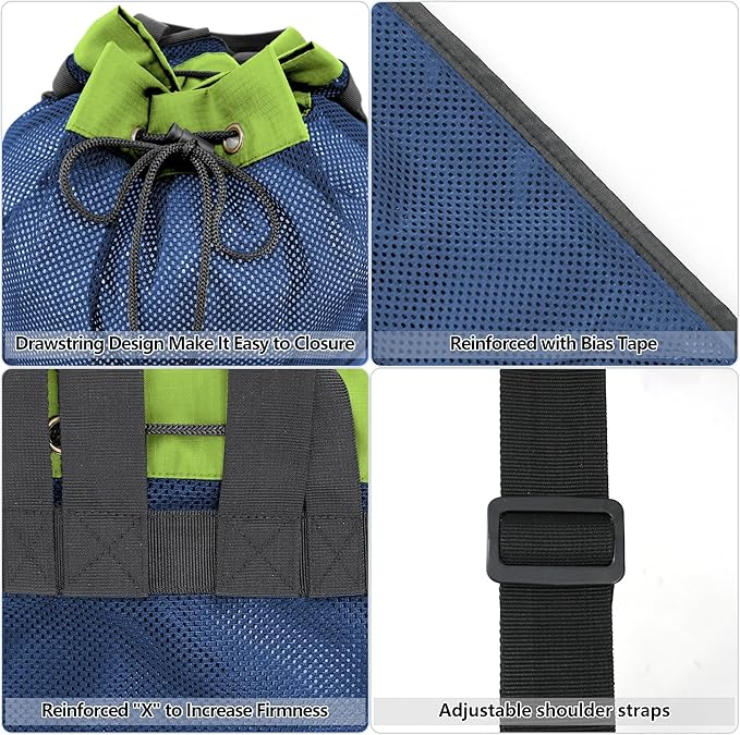 - 【LARGE CAPACITY & STURDY】-- This mesh swim bag measures about W19.6" X H15.7", big enough to protect and organize your equipment such as workout gear, gym gear, swimming gear, sports gear, beach gear, and pool gear. We used reinforced X-stitches for the shoulder straps so that the sports bag wouldn't tear when it was full of items. The fabric of our workout gear bag is also made of rip-proof material so that the sports backpack is sturdy and can be used for a long time.