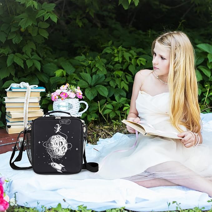 Universe Lunch Box for Kids, Space Moon Astronaut Lunch Bag for Boys Girls, Reusable Insulated Waterproof Lunch Box with Adjustable Shoulder Strap Thermal Cooler Tote Bag for School Daycare Picnic