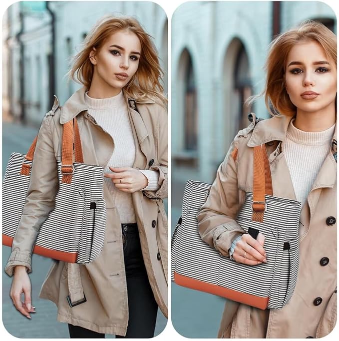 Large Women Lunch Bags for Work/Insulated Adult Lunch Box/Leakproof Cooler Lunch Tote Bag with Storage Pocket. Reusable Lunch Cooler Purse for Work Picnic Hiking 14L, Stripe