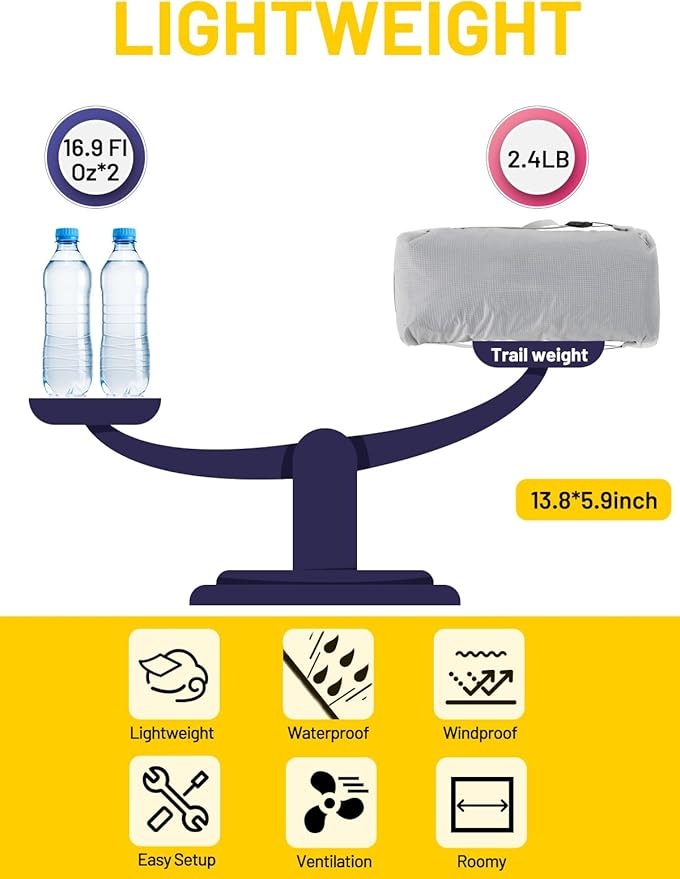 - VERSATILE ULTRALIGHT TENT: One ventilation window and full high density mesh inner tent, provide good breathability and prevent condensation from building up. It fits for trekking, mountaineering, hiking, camping and other outdoor sports