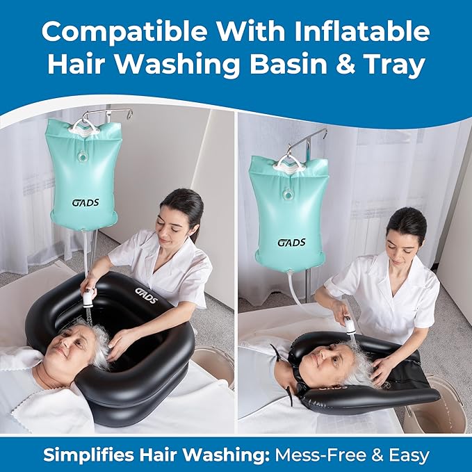 - Convenient Bedside Washing: Our 2.5-gallon portable water bag is designed for easy hair washing. Hang it above the bed for quick access to water, ensuring a comfortable experience without traditional showers.
