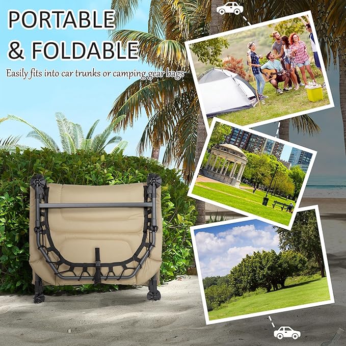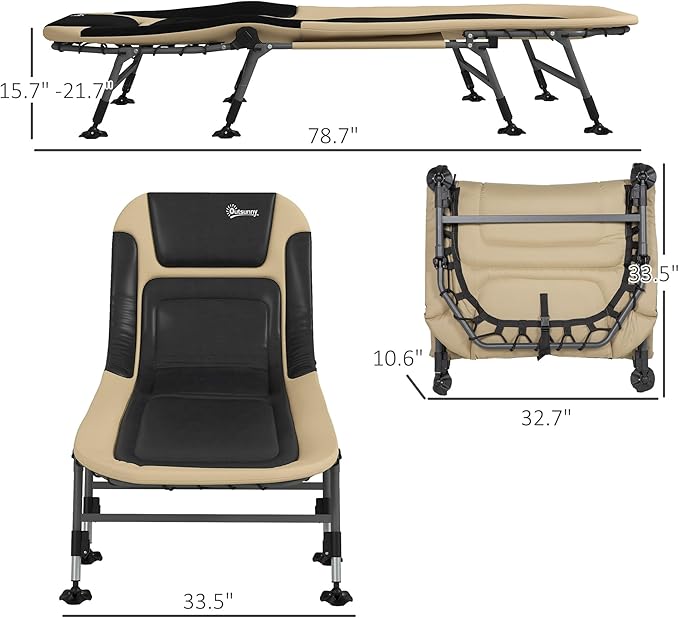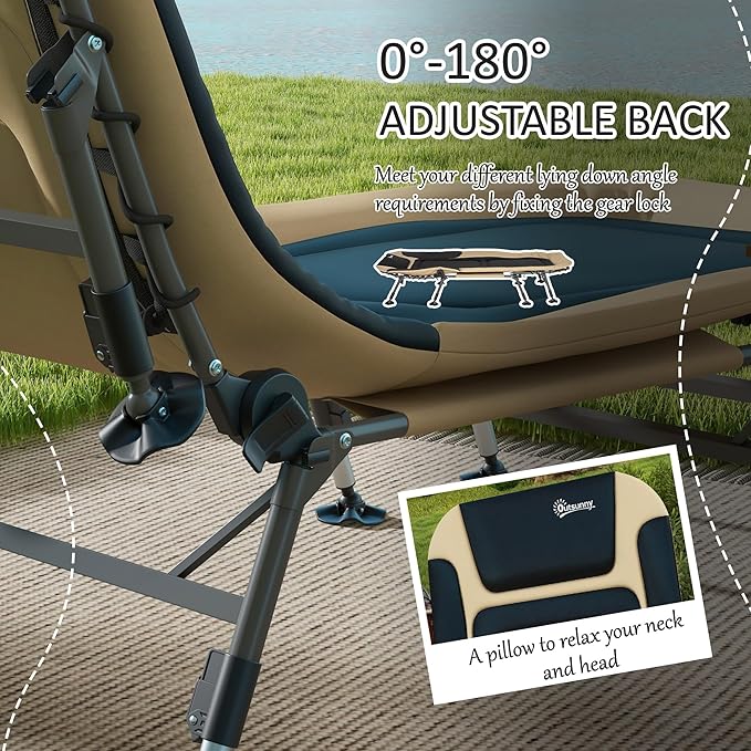 Outsunny Camping Cot for Adults, Folding Bed with Soft Padded Cushions & Headrest, 180° Adjustable Reclining Lounger, Heavy Duty and Portable with a 400 lbs. Capacity, Cream White