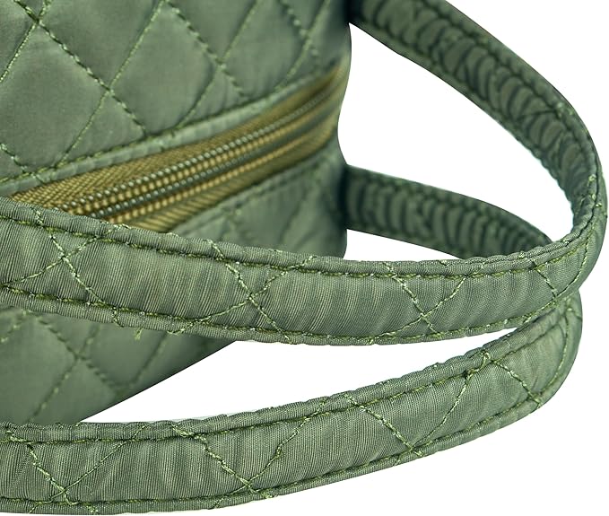 Machine Washable Women Quilted Fabric Insulated Reusable Cooler Lunch Bag Tote Adult Thermal Lunch Box Storage Bag for Work (Green)