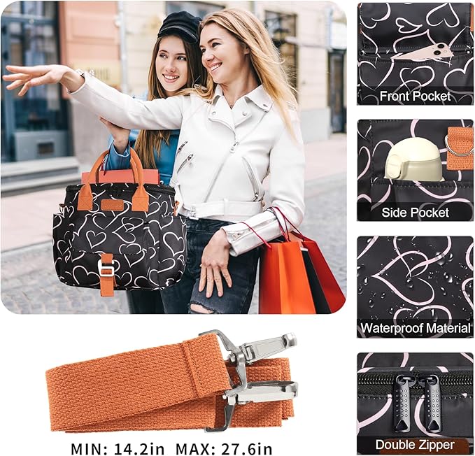- [CONVENIENT & PORTABLE] The reusable lunch box features one reinforced handle on top and comes with removable and adjustable shoulder straps which can be adjusted from 14" to 27", which provides another carrying option at work with this lunch bag, making it a versatile option that you can carry with your ladies' lunch box to the office, day trips, beach. Stylish and lightweight design is convenient to be used as your lunch bag, cooler bag, picnic bag, sundry bag or shopping bag.