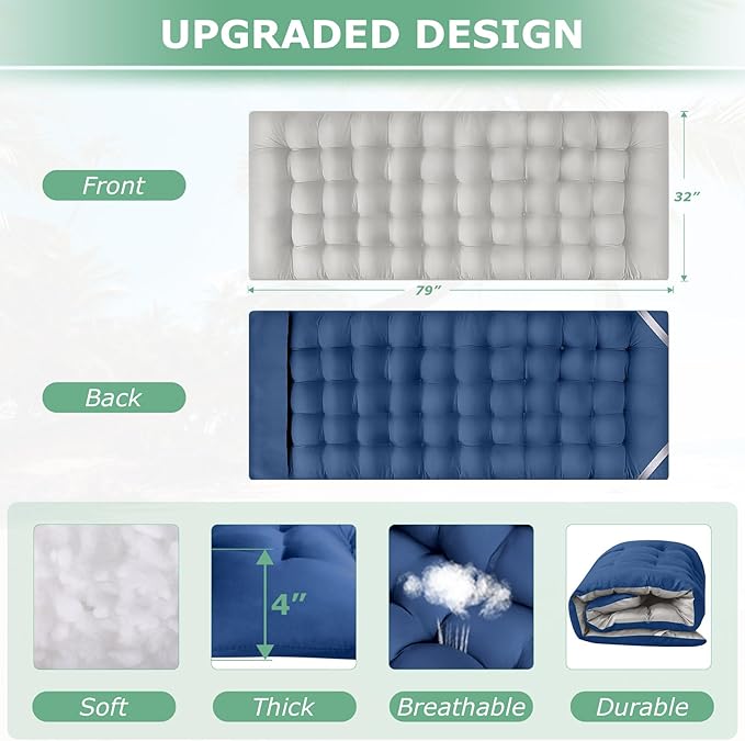 - 【TIPS】Our oversized mat is vacuum-packed, and it will be naturally fluffy within 1-3 hours after unpacking. To unfold the cot to lay flat, please refer to the manual