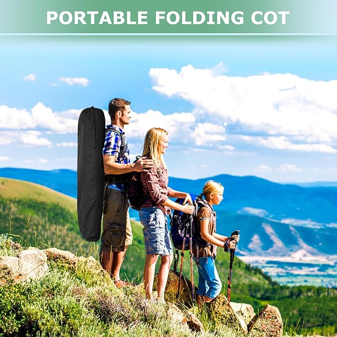 - 【Built-in Pillow Design】The headboard of our cot is a slanted design with built-in pillows, no need for extra pillows. The slight incline is ergonomically designed to ensure no more back, neck or shoulder pain in sleep! The mattress is also soft and thicker, so this is a very comfortable folding camping cot.