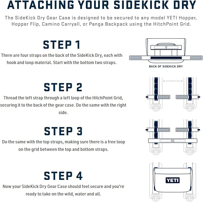 - Keep everything in your pockets – out of your pockets and dry with the YETI Sidekick 1L Dry Gear Case. Compatible with all Camino and Hopper products and the Panga Backpack