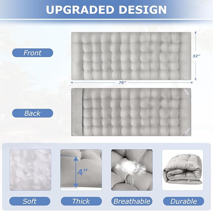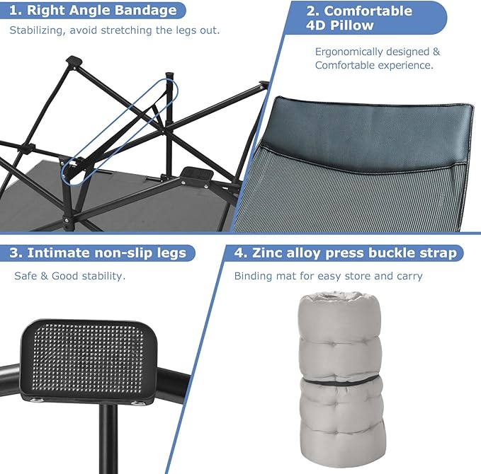 - 【TIPS】Our oversized mat is vacuum-packed, and it will be naturally fluffy within 1-3 hours after unpacking. To unfold the cot to lay flat, please refer to the manual