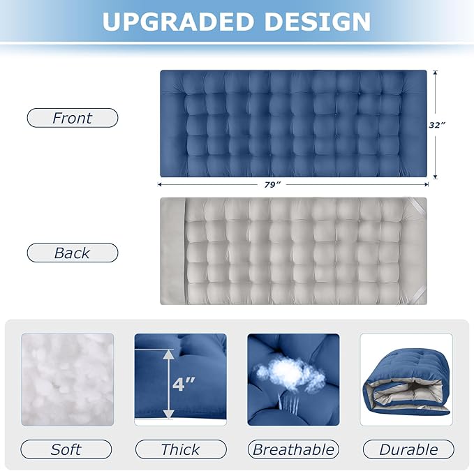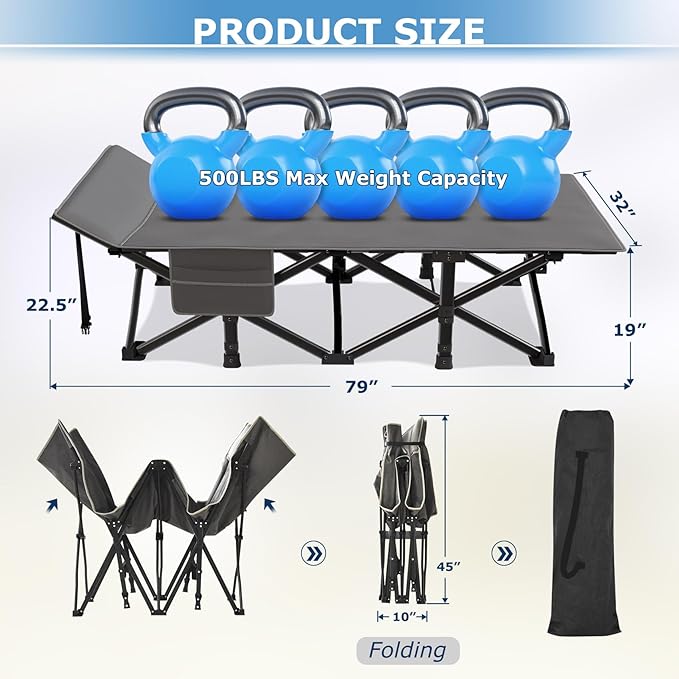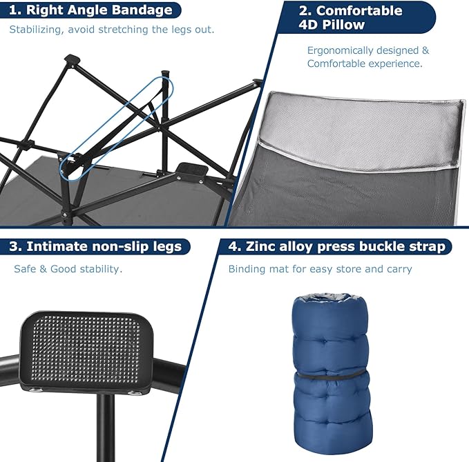 - 【TIPS】Our oversized mat is vacuum-packed, and it will be naturally fluffy within 1-3 hours after unpacking. To unfold the cot to lay flat, please refer to the manual