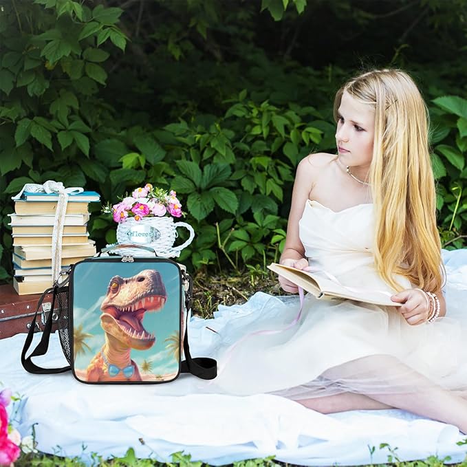 Dinosaur Lunch Box for Kids, Animal Dino Raptor Lunch Bag for Boys Girls, Reusable Insulated Waterproof Lunch Box with Adjustable Shoulder Strap Thermal Cooler Tote Bag for School Daycare Picnic