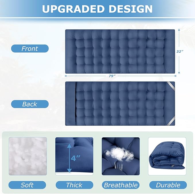 - 【TIPS】Our oversized mat is vacuum-packed, and it will be naturally fluffy within 1-3 hours after unpacking. To unfold the cot to lay flat, please refer to the manual