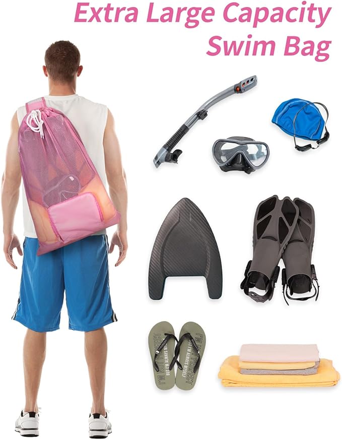 - 【Perfect Choice】: This durable mesh swim bag is machine washable and suitable for swimmers and adults. Whether you're going swimming, biking, camping, hiking, to the pool, beach, gym, or participating in dance and sports activities, it's a versatile accessory. Additionally, it makes for a thoughtful gift for family, friends, and partners after personalization.